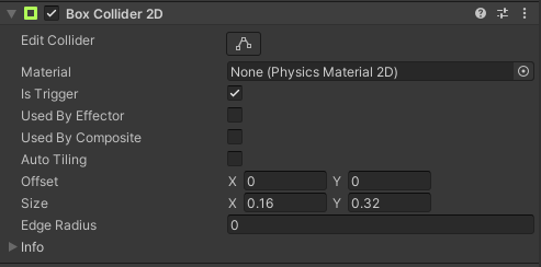 The Box Collider 2D is a Collider that interacts with the 2D physics system and other objects with the Component and through C# Scripts. It has a rectangle shape with a position, width and height in the local coordinate space of a Sprite. Its has a X, Y, Z Axis which you can alter to your liking