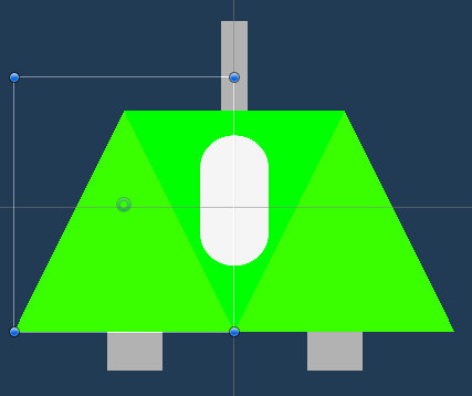 Made of 7 parts, 1 Square, 2 Triangles, 3 Rectangles and 1 Capsule. This is all located under 2D Object, Sprite tab. Making a quick nice Space ship for the Player to use
