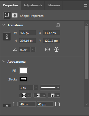 You can use the Properties Tab in the bottom-left corner to change the Colour, Line, Shape and Cut the corner of the shape if you wanted to. I cut the corner off the button to make look nicer to the Player.