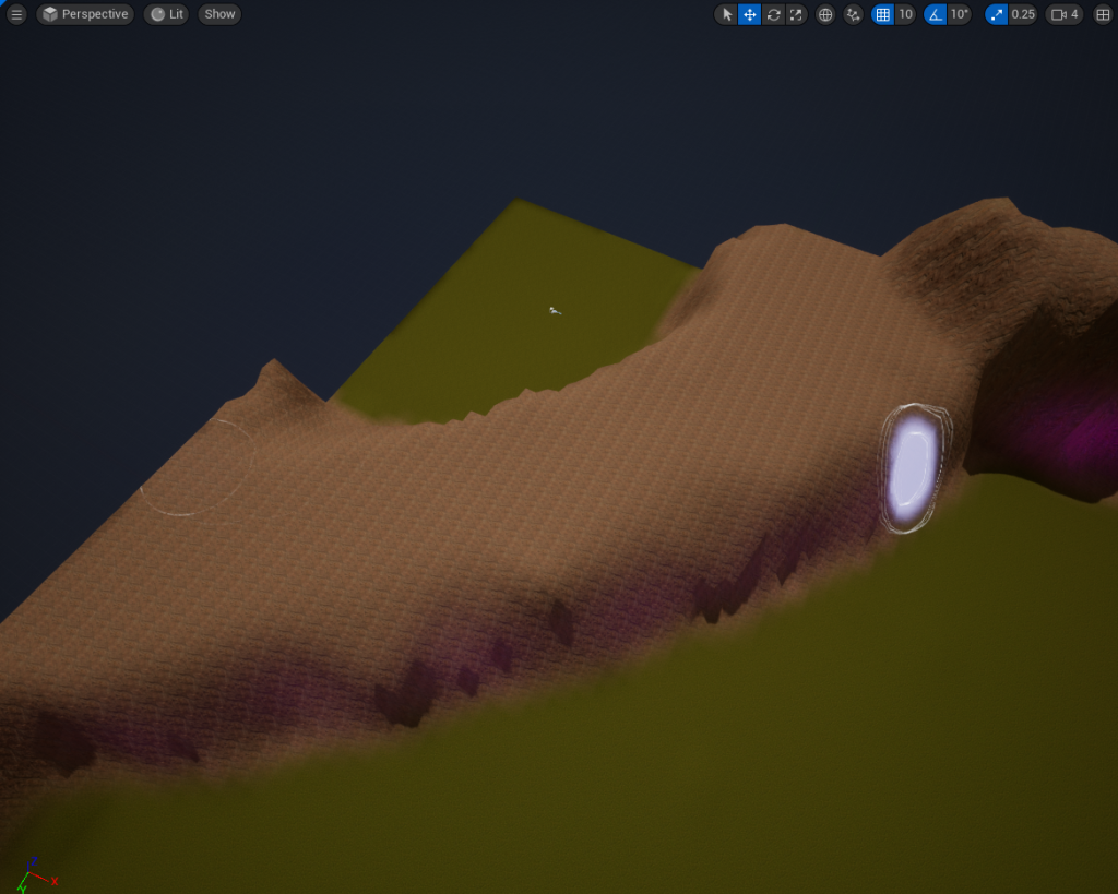Made a simple 2×2 Terrain and used the Terrain Tool to make a Cliff for my Cave Entrance