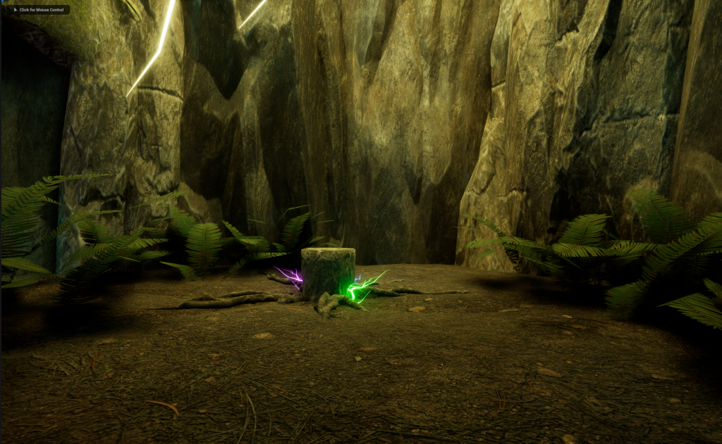 I added in some grass to all the Dirt section in the Main Cave, so then it will look more alive when the camera will go through the area. The grass does not have any animation since this cave doesn’t get sudden or strong wind coming thorough.