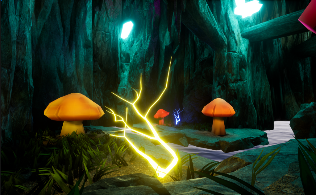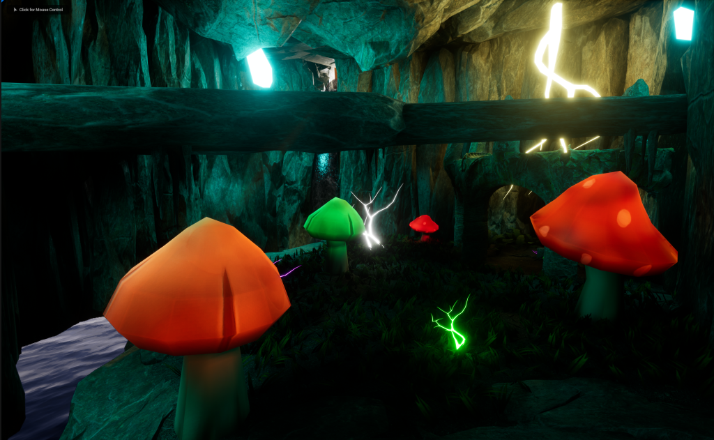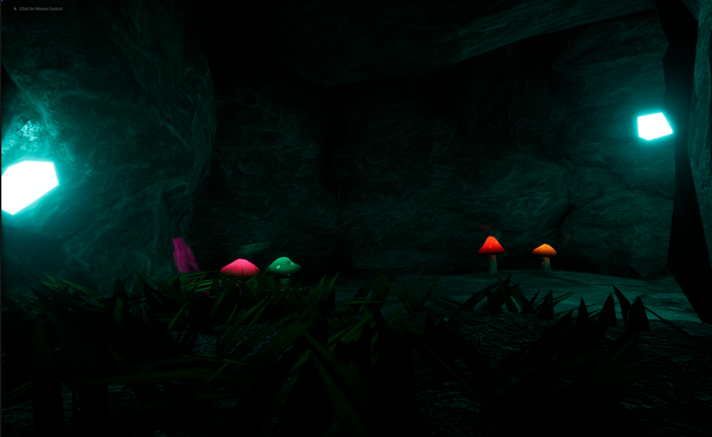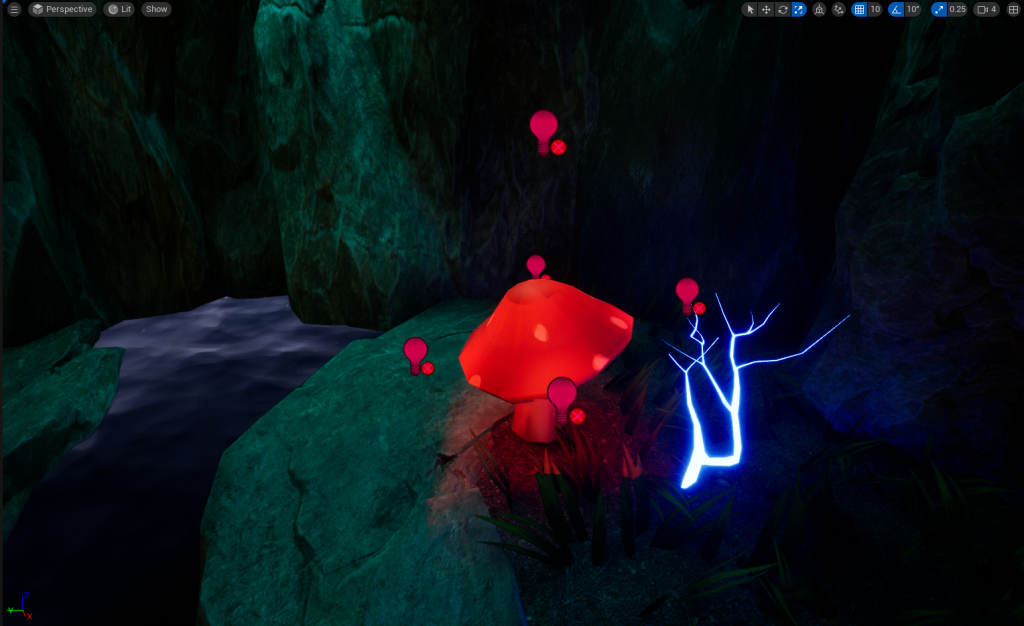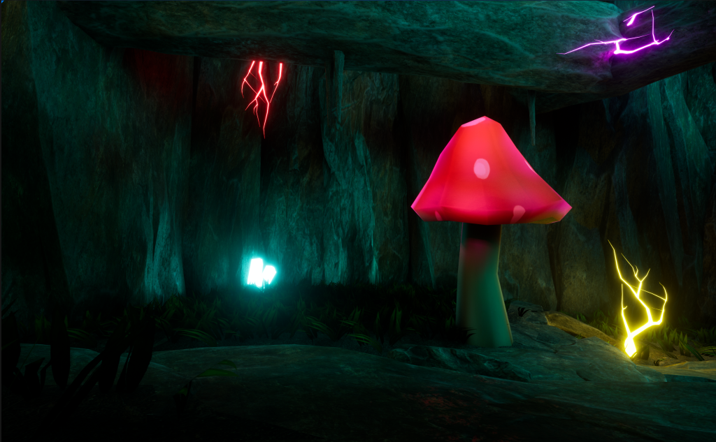 So instead, I used Area Lights and put them around the Mushroom Tips so then only that Part looks like its Glowing. The lights are a little glitchy on some of the Mushrooms but It didn’t bother me that much. Now the mushrooms will glow in multiple Colours like Red, Orange, Yellow, Blue, Pink and Green.