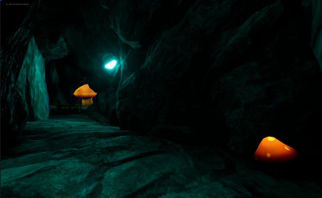 The end part of the Cave Tunnel that is going to lead He/She into the Main Part of the Cave where the Asset and most of the props will be taking place. The small mushrooms will be on both sides of the walls to help with lighting up the tunnel in order to see better.