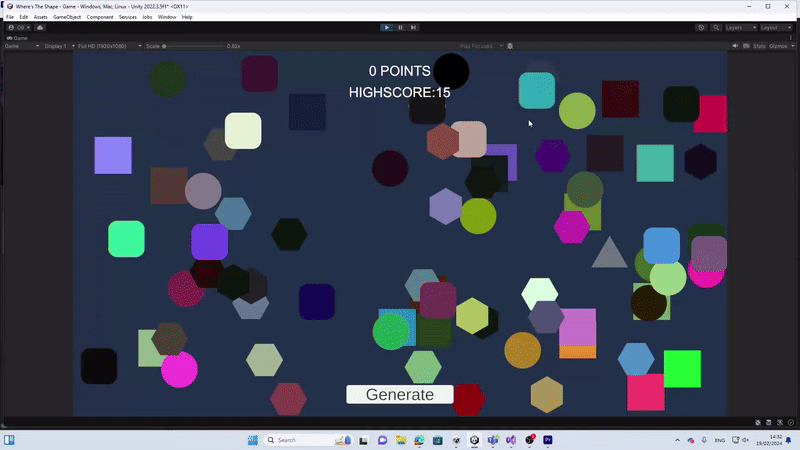 The Other Obstacle was when Re-Generating Shapes, they would all be the same Shape. Meaning all could be ‘Wally’ or not at all. I found a way around thanks to Ben, Our Main Coder.